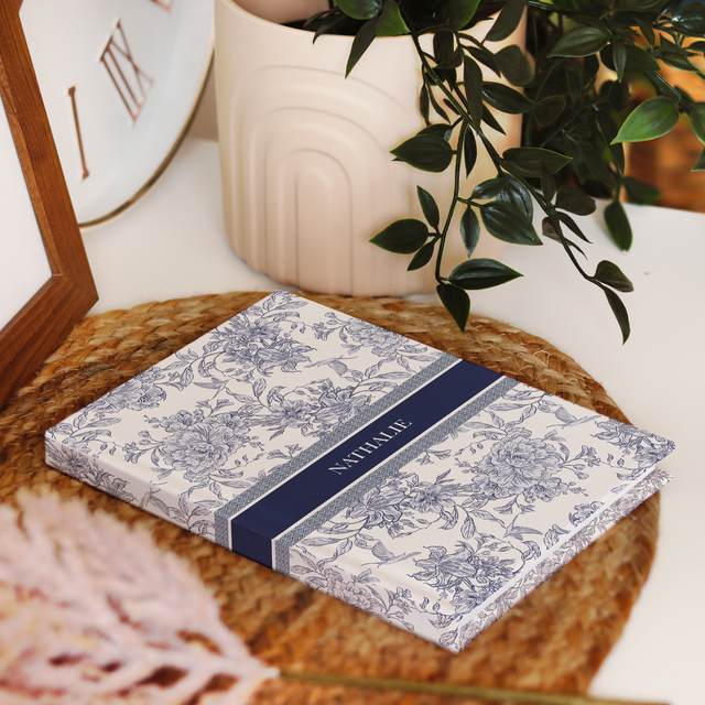 Un carnet élégant et intemporel, pensé comme un bel objet personnel à la fois utile et symbolique. Son motif toile de Jouy raffiné, décliné en plusieurs coloris, associé à une personnalisation sur la couverture, en fait un carnet unique, à votre image.