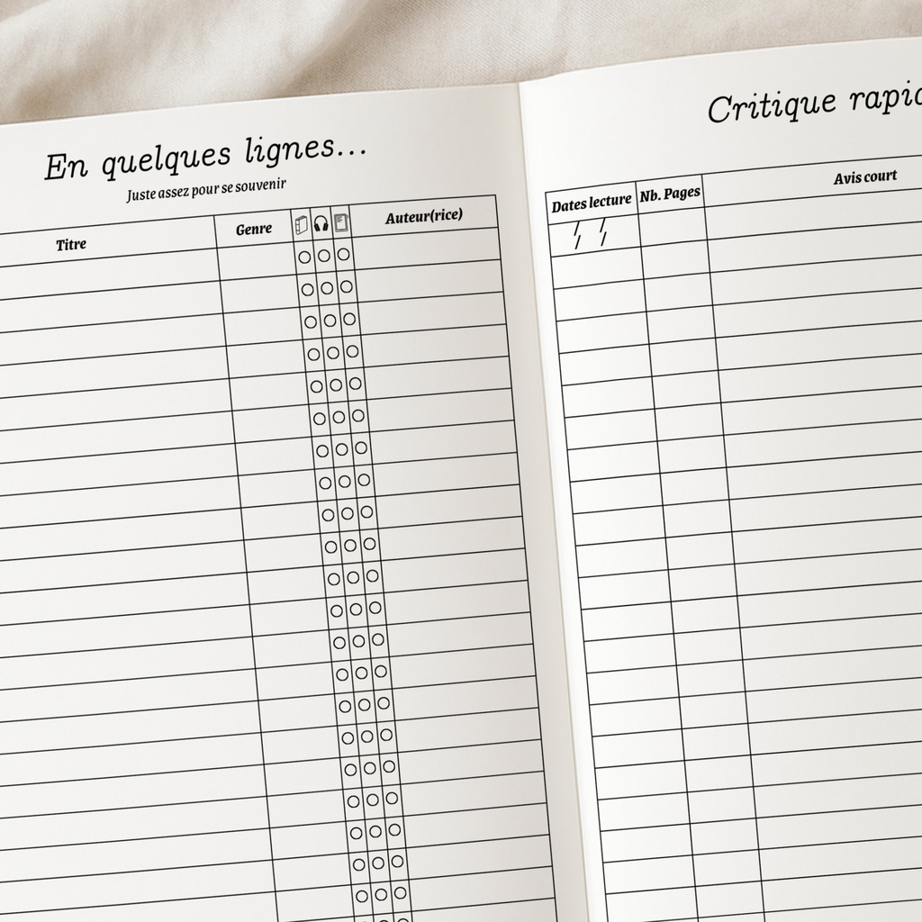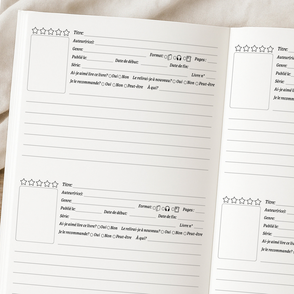 Découvrez l'amour de la lecture à travers l'écriture avec le carnet de lecture, votre compagnon fidèle pour vos aventures littéraires… et bien au-delà.